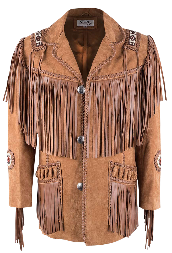 A style reminiscent of the true American West. The Brown Boar Suede Coat features classic western details with long leather fringe along the yokes,... |