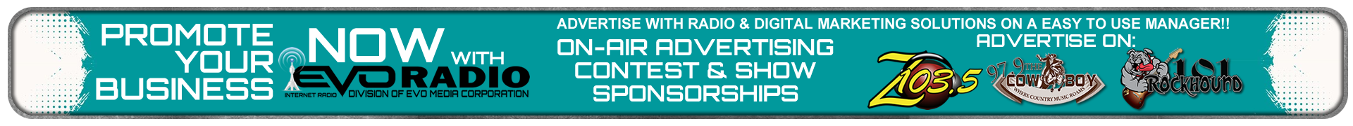 Prizes are not transferable, must be accepted as awarded, and may not be substituted or converted to cash, except by EVO Media Corporation / EVO Radio as indicated below. EVO Media Corporation / EVO Radio reserves the right to substitute a prize of equal or greater monetary value, whether in cash or otherwise, if a prize cannot be awarded as described. EVO Media Corporation / EVO Radio however, will not be responsible if weather conditions, event cancellations, or other factors beyond their reasonable control prevent the Prize or any part of the Prize from being fulfilled. In any such event, winners will not be provided with a substitute for the missing Prize or any such part of the Prize but will be eligible to enter or win another contest.
